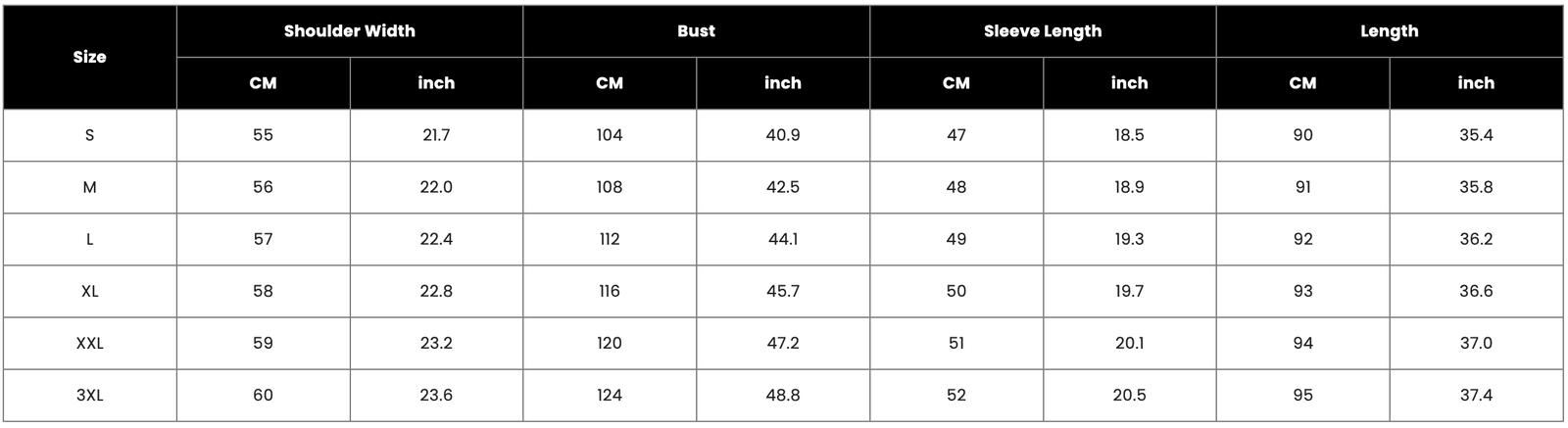 2. Please allow 0.5-1″ difference due to manual measurement(1inch = 2.54cm);